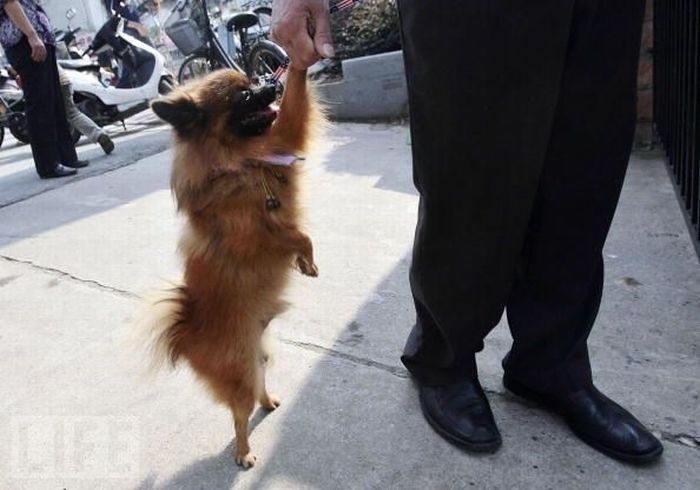 These are some very cute pictures of dogs walking on their hind legs. There's something peculiar but also very endearing about dogs that can walk upright. Maybe its because they seem all too human when they're standing on their hind legs.